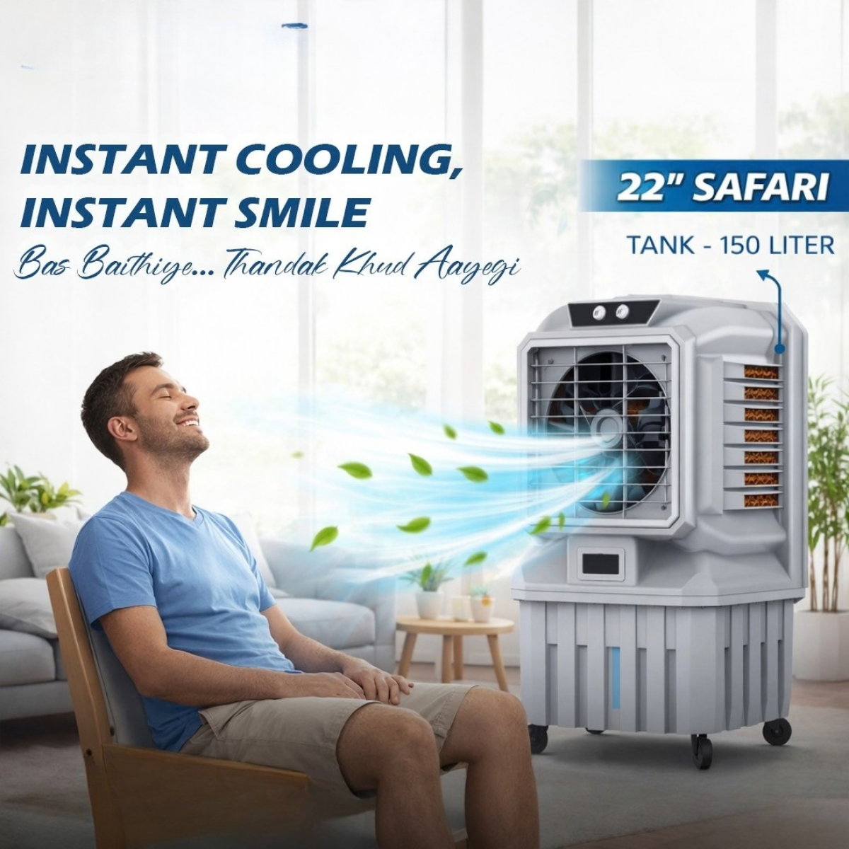 The Aircome 22" Safari Commercial Cooler provides efficient cooling with its 150L tank, 3-side honeycomb pads, 18" 3-speed exhaust motor, and 22" climatizer blade. Designed for large commercial spaces, it delivers powerful airflow and consistent cooling to ensure a comfortable environment even in extreme heat.